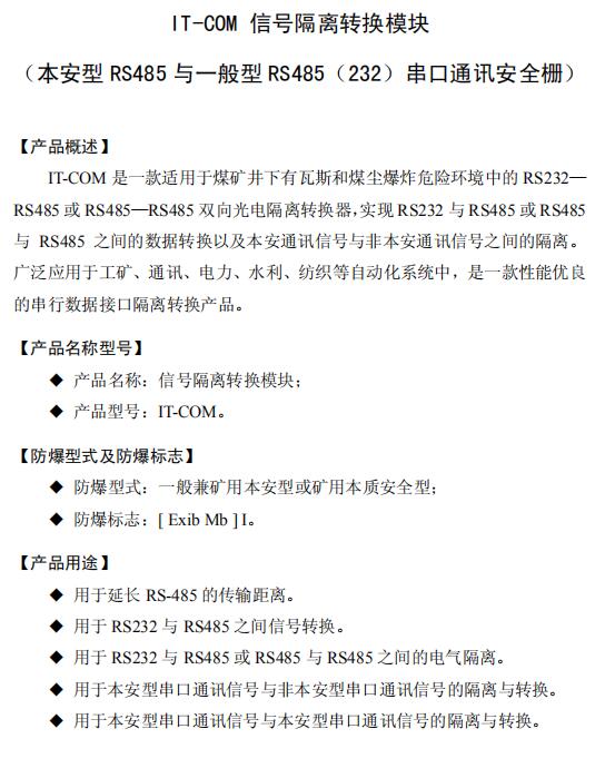 IT-COM 信號(hào)隔離轉(zhuǎn)換模塊使用說明